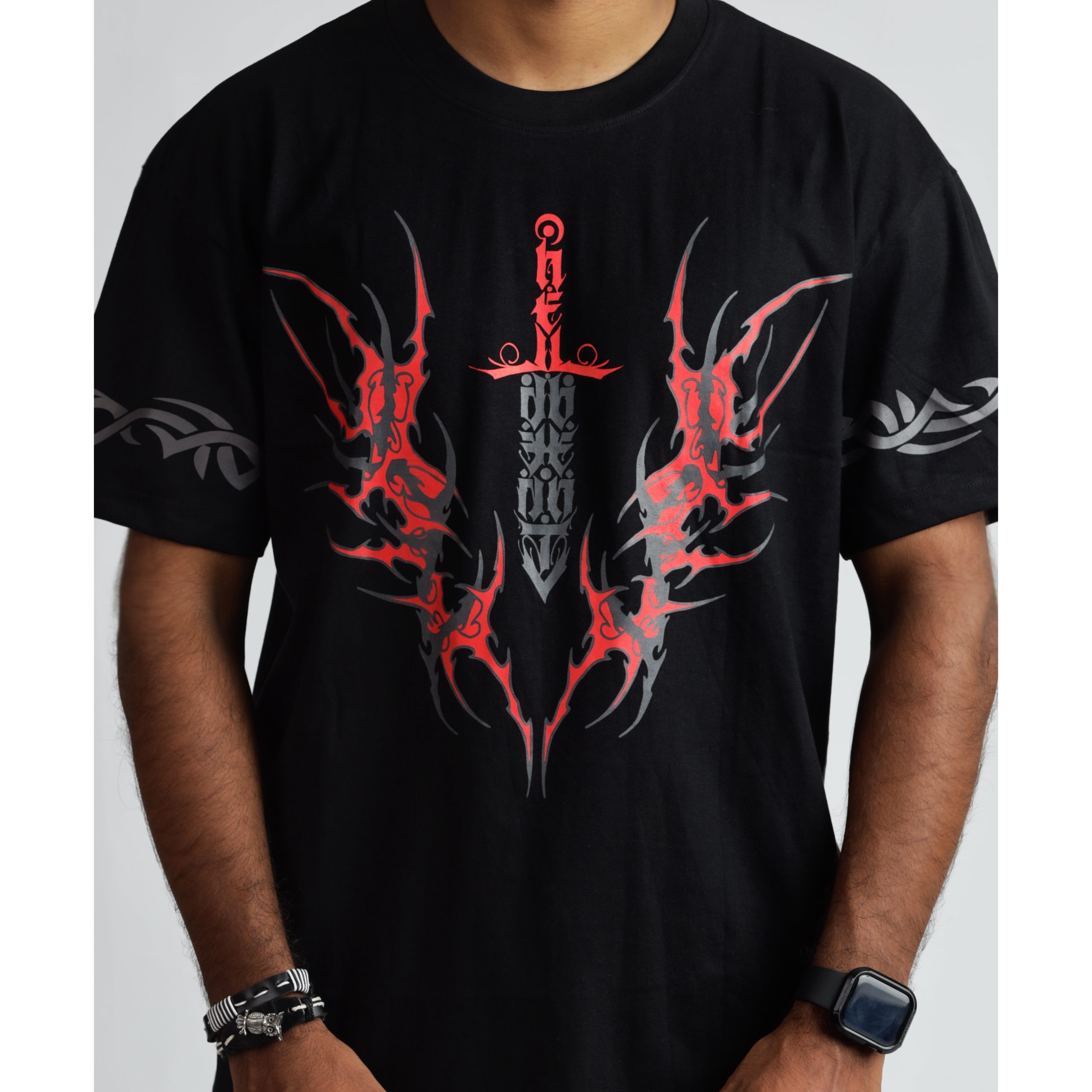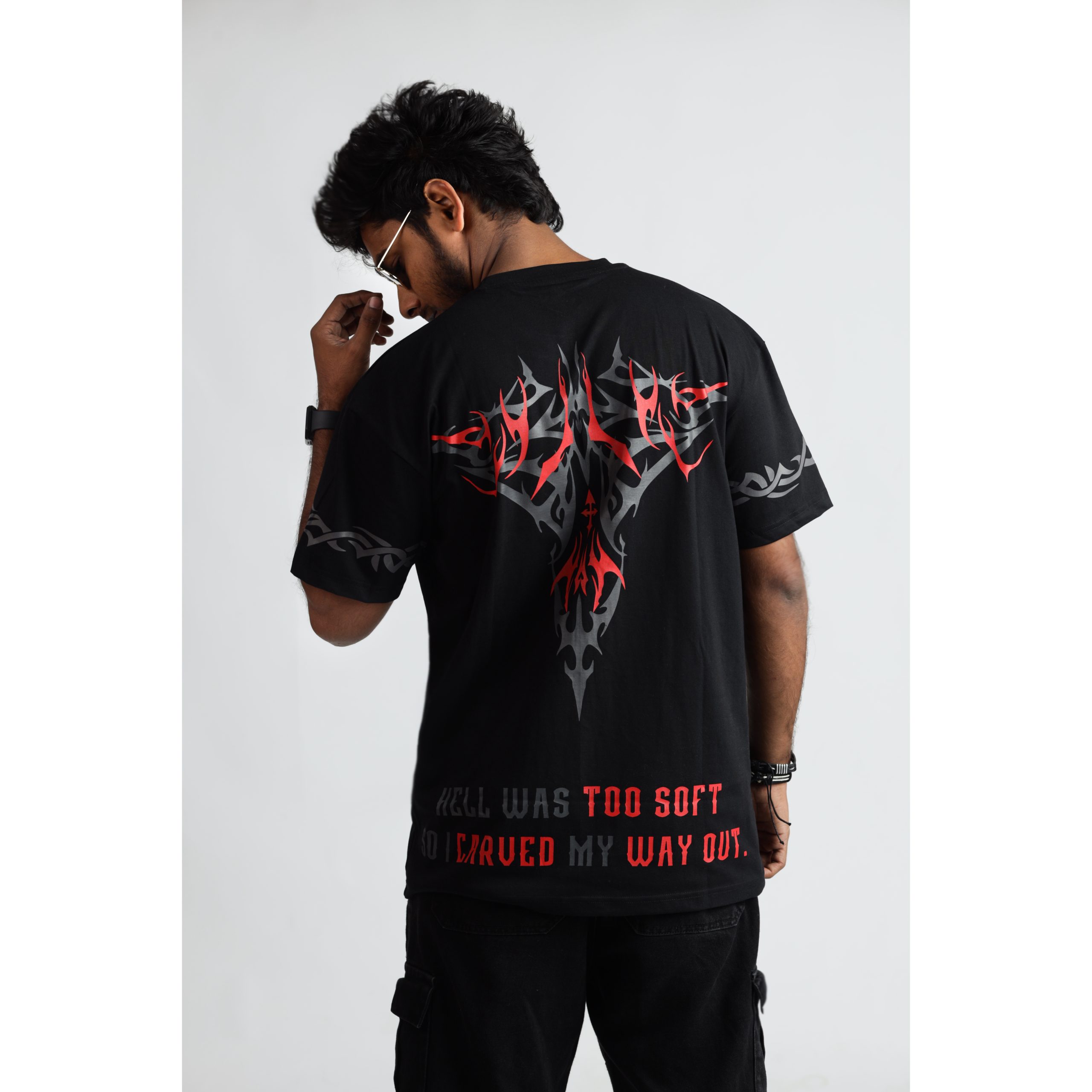 The “Eternal Dread” T-shirt is a chilling tribute to the dark and the unknown, designed for those who embrace horror, mystery, and the macabre. Featuring an ominous knife design on the front, intricately embedded with the words “HELL” and “DEATH”, this piece symbolizes fear, mortality, and the inescapable grip of the unknown. Set against a deep black fabric, the eerie details create an unsettling yet captivating visual effect, perfect for those who love to stand out with an edgy, horror-inspired look. Made from premium bio-washed cotton, this T-shirt ensures all-day comfort while making an unforgettable statement. Whether you’re a fan of horror aesthetics, dark symbolism, or simply enjoy bold and sinister designs, this limited-edition piece is your new favorite wardrobe staple.